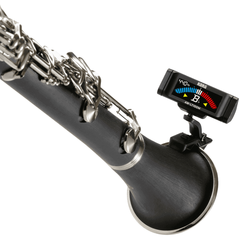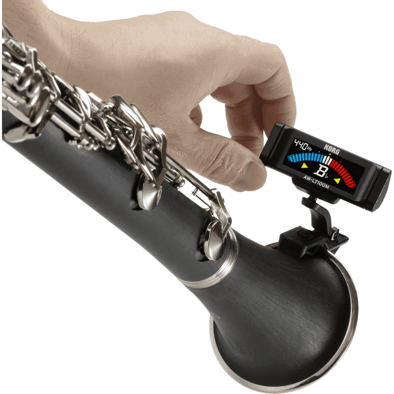 Les accordeurs à pince KORG de la gamme AW-LT100 peuvent être attachés directement à votre instrument pour un accord facile et précis.