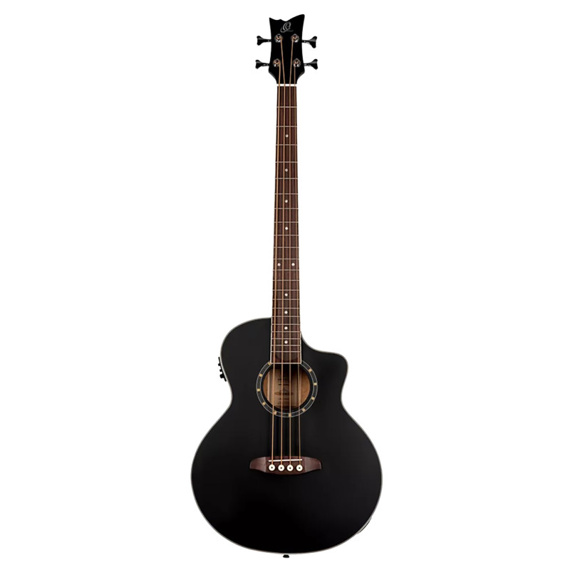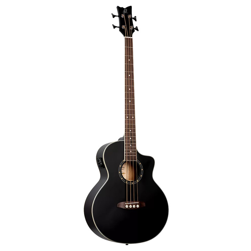 D7CE-SBK-4, basse 4 cordes, pan coupé, EQ Ortega MagusPro, table épicéa, f/e acajou, manche acajou, noir satiné