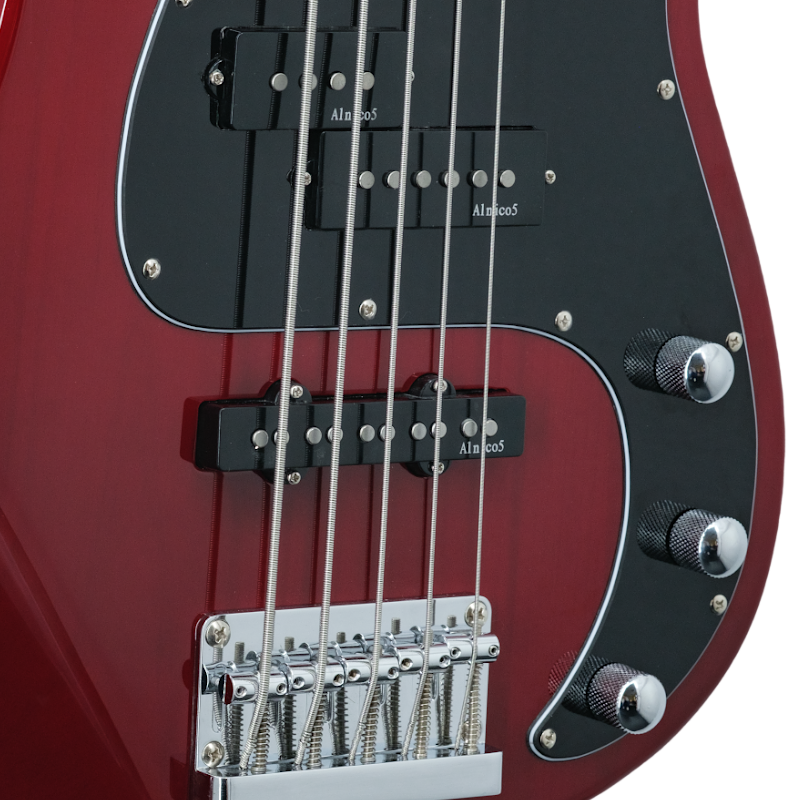 Le Micro (ALNICO V) de la Précision allié à la finesse du Micro (ALINICO V) du modèle "Jazz" en position chevalet, combinés à un jeu de cordes SAVAREZ Hexagonal Explosion 45-105 (Réf : B70M4), pour un son "piquant", au doigts comme au médiator, ainsi qu'un son monstrueusement plein et musclé en assemblant les deux ! Un modèle idéal pour les grosses lignes de basses "pop" ou bien encore un jeu tout en slap !!!