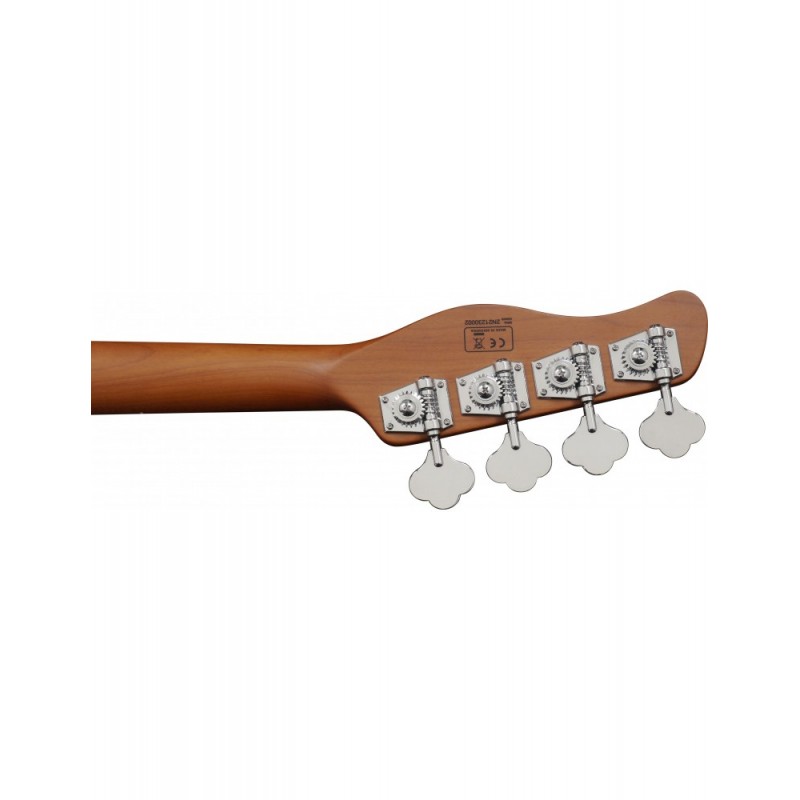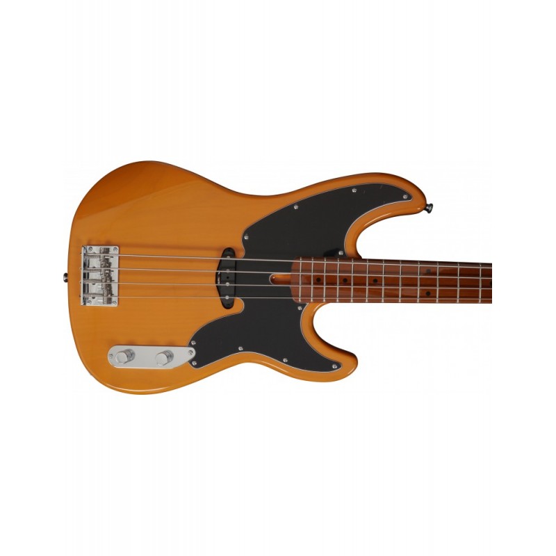 Corps en Aulne d'Amérique du nord, forme du corps: Precision Bass type, manche en érable dur torréfié , forme en C, Diapason: 34", Touche en Érable dur torréfié (Radius : 9'5"), Frets: 2,4 medium, Sillet:42mm, Incrustations noires, Ensemble de capteurs Vintage T-Bass Simple bobinage, Contrôle Volume et Tonalité, Chevalet : Marcus vintage-S, Mécanique: Apparente deluxe (Chrome), Boutons : Metal Chrome, Pickguard : Noir 3 plis, Finition Butterscotch Blonde