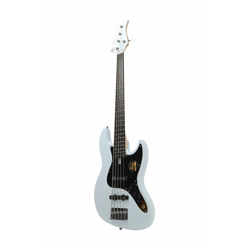 La basse M. MILLER V3P Alder-5 SNB RN adopte une forme Jazz, un corps en Acajou, un manche en Erable et une touche en Palissandre, le tout magnifié par une finition Sonic Blue.
