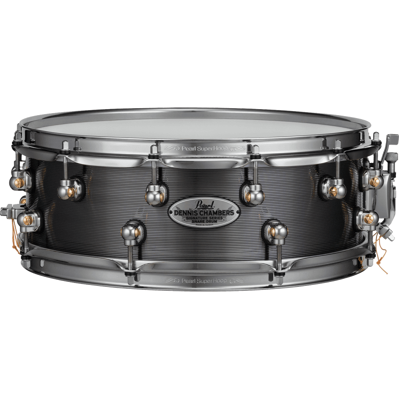 Cette caisse claire se devait d'être à la hauteur de son créateur, le légendaire Dennis Chambers. Dotée d'un fût moulé en aluminium de 3 mm consolidé par des renforts de chanfreins de 2 mm, elle a la particularité d'offrir 12 tirants côté frappe et 8 côté timbres pour concentrer la sensibilité sur la peau de frappe. Belle, polyvalente, précise et puissante, elle cumule toutes les qualités requises pour s'imposer en tant que reine des caisses claires. Il fallait bien cela pour célébrer les 30 ans de partenariat entre Pearl et et le roi Dennis Chambers.