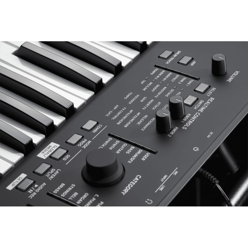Le modèle à 61 touches présente un design nouveau et élégant, et son poids a été encore réduit de 4,3 kg du modèle précédent à un poids encore plus léger de 3,8 kg. Des améliorations supplémentaires dans l'efficacité énergétique permettent jusqu'à sept heures de fonctionnement à piles à partir de six piles AA. Le modèle de 88 touches fournit récemment un compartiment d'accessoires qui peut contenir des piles ou des câbles de rechange, ainsi qu'un compartiment à piles accessible facilement. Sur les deux modèles, le logo KORG du panneau arrière est entièrement éclairé, vous permettant de vous démarquer sur scène.