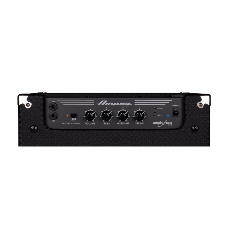 L'amplificateur pour basse RB-108 est équipé d'un circuit overdrive propriétaire Super Grit Technology qui intensifie le caractère rugissant, musclé et chaleureux qui définit le son classique d'Ampeg. Combinée à l'égaliseur classique de 3 bandes, l'overdrive SGT vous permet de créer votre son de basse idéal.
