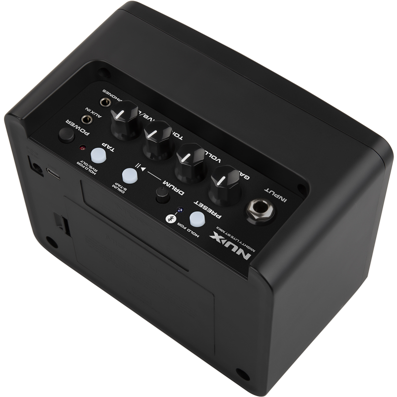 Le Nux Mighty Lite BT MK2 est un ampli de bureau simple, efficace et moderne. Il embarque la technologie de modélisations TS/AC-HD et intègre désormais 7 presets directement accessibles via les boutons sur le panneau de contrôle. Ces presets sont également totalement paramétrables dans le détail via l’application Bluetooth Mighty Amp™. L'ampli propose également une boîte à rythmes et un bouton tap tempo vous permet de contrôler le tempo de votre délai ou de du rythme lancé. Son entrée Aux in vous permet de diffuser votre musique via port mini-jack, et sa sortie casque vous autorisera des sessions de pratique silencieuse de votre instrument.