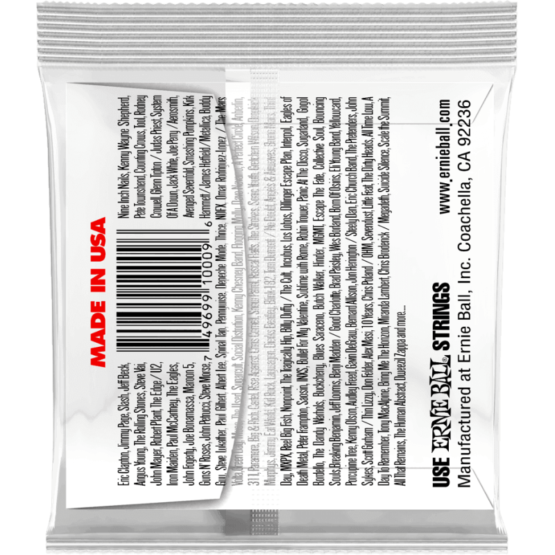 LE jeu de cordes incontournable. Adopté par Eric Clapton, Jimmy Page, Slash, Angus Young et une légion de légendes ! Ces cordes sont fabriquées en respectant un cahier des charges très strict propre à Ernie Ball qui garantit une performance optimale. L'âme hexagonale accueille un fil de nickel pour une durée de vie accrue.