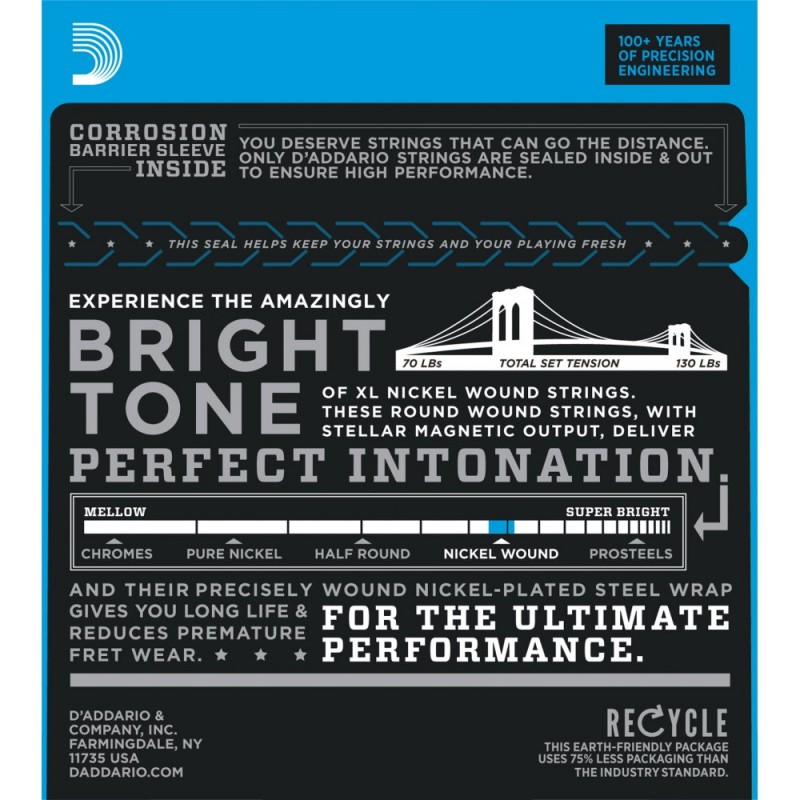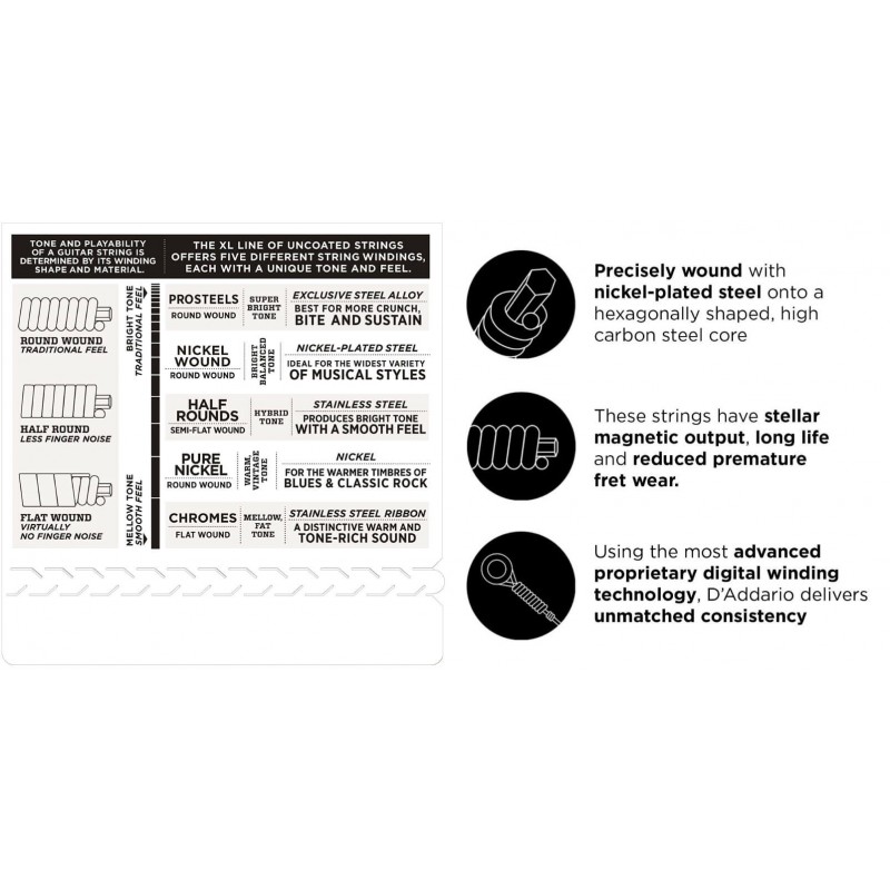 Découvrez les cordes électriques D'Addario les plus populaires au monde ! Des cordes au son brillant distinct et caractéristique. Elles sont idéales pour la plupart des guitares et la plupart des genres musicaux.