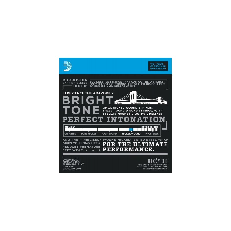 Découvrez les cordes électriques DAddario les plus populaires au monde ! Des cordes au son brillant distinct et caractéristique. Elles sont idéales pour la plupart des guitares et la plupart des genres musicaux.