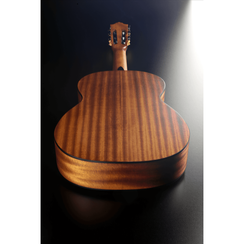Avec sa table en finition érable naturel et une lutherie de qualité cette guitare est aussi jolie qu'elle est agréable à jouer. Voici un instrument que l'on peut mettre sans aucun souci entre les mains d'un débutant car il respecte en tous points les codes de la guitare classique et il saura l'accompagner pendant toutes les phases de son apprentissage.