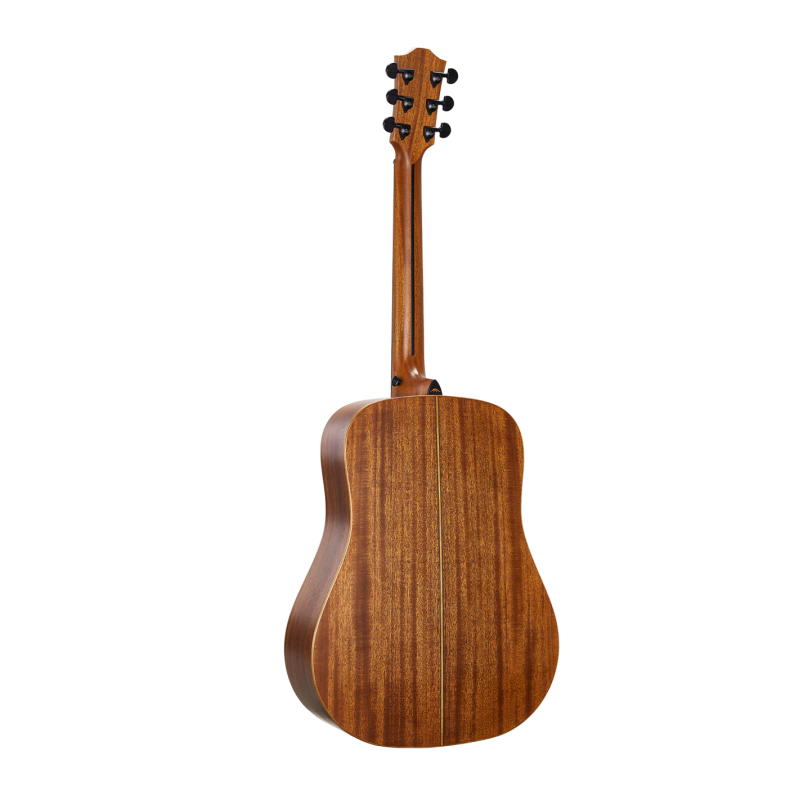 La guitare BROMO BAT1N adopte un gabarit Dreadnought, une table en Epicéa massif, un dos, des éclisses et un manche en Acajou ainsi qu'une touche en Ebène, le tout magnifié par une finition satinée.