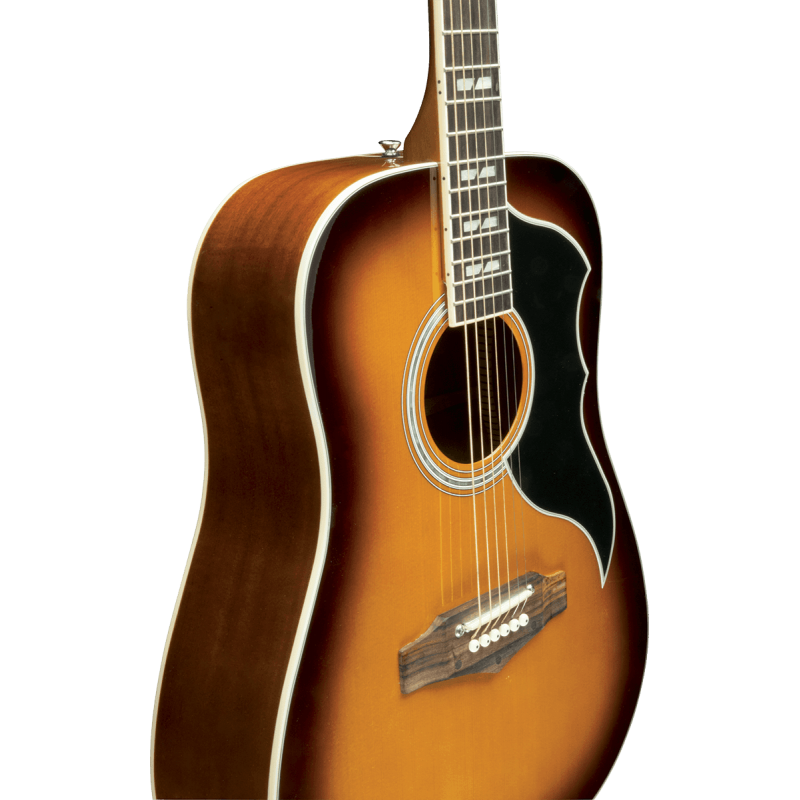 La Ranger est probablement l'un des modèles les plus déclinés du catalogue de guitare acoustique de la marque Eko, notamment avec sa série réédition Vintage Reissue (VR). Disponibles dans deux coloris différents, Vintage Natural et Honey Burst, elles existent également en version 12 cordes, acoustique ou électroacoustique (EQ).