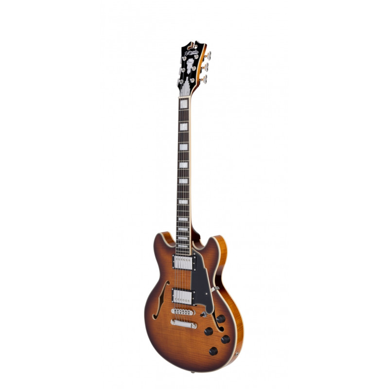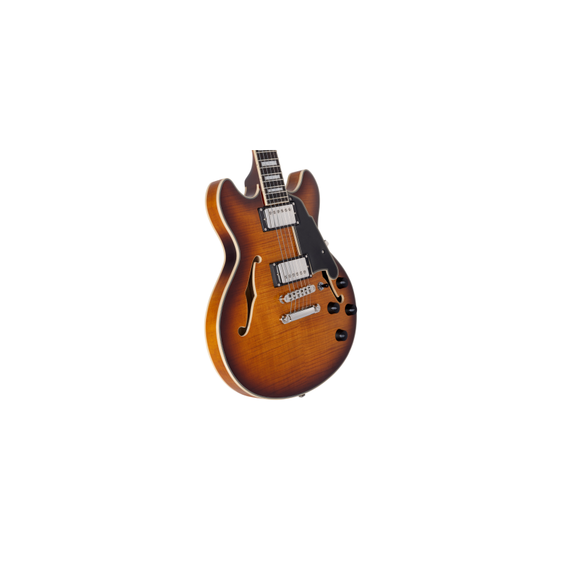 Guitare Semi Hollow, bloc central, Double Pan coupé, Table Dos et éclisses en érable.