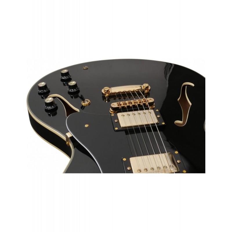 LARRY CARLTON H7 BK Corps en Erable massif flamé - eclisse et dos erable, Gabarit: Semi-Hollow, manche acajou, forme en C, diapason: 24'75”, touche en ébene (Radius : 12")