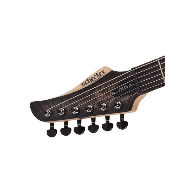 Profilées, affutées et audacieuses, les guitares de la série Reaper 6 ne vous décevront pas. Leur corps en frêne des marais alloué à leur table en loupe de peuplier est couplé à un manche en érable et noyer renforcé 5 plis et une touche en ébène. Un pan coupé Ultra-Access apporte un maximum de confort aux prestations les plus exigeantes. Leurs micros Schecter Diamond Decimator tranchent à travers n'importe quel mix mais restent polyvalents quelque soit la situation.