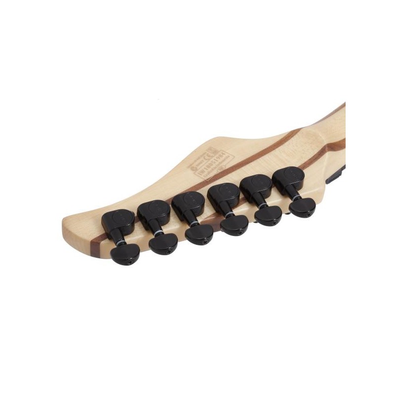Profilées, affutées et audacieuses, les guitares de la série Reaper 6 ne vous décevront pas. Leur corps en frêne des marais alloué à leur table en loupe de peuplier est couplé à un manche en érable et noyer renforcé 5 plis et une touche en ébène.