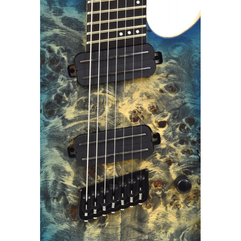 Profilées, affutées et audacieuses, les guitares de la série Reaper 6 ne vous décevront pas. Leur corps en frêne des marais alloué à leur table en loupe de peuplier est couplé à un manche en érable et noyer renforcé 5 plis et une touche en ébène.