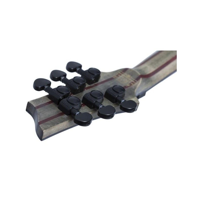 Coupée dans la célèbre forme C signée Schecter, on la trouvera dans plusieurs configurations différentes mais toujours avec sa finition Rusty Grey apocalyptique !