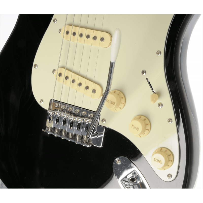 La ST300 est une guitare électrique aux lignes vintage intemporelles, qui ont marqué toutes les générations de guitaristes depuis les années 1950. Avec son électronique constituée de 3 micros simples contrôlés par un sélecteur 5 positions, son bloc chevalet/vibrato, et sa plaque de protection vintage aspect vieilli, la ST300 présente une polyvalence qui fera le bonheur de tout guitariste débutant son aventure musicale.