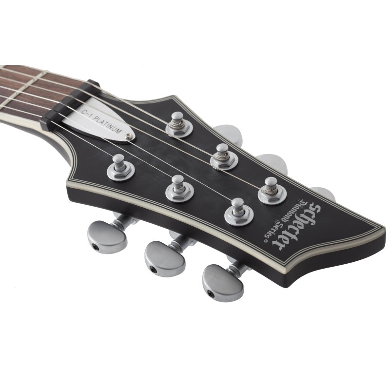 La nouvelle série Platinum propose des guitares au corps acajou, manche érable 3 pièces collé avec le profil Ultra Access, pour une jouabilité optimale jusqu'aux notes les plus aiguës, ainsi qu'une touche ébène équipée de 24 frettes X-Jumbo. L'électronique n'est pas en reste avec le kit de micros EMG 57/66, qui offrent des sonorités plus organiques et naturelles que les autres micros actifs. Schecter apporte un nouveau souffle aux grands classiques de la guitare électrique, disponibles sous la forme C-1, Solo, SII et V-1, vous ne pourrez que tomber sous le charme de leur confort et leur polyvalence. Avec les nouvelles Schecter, élevez votre son au niveau Platinum !