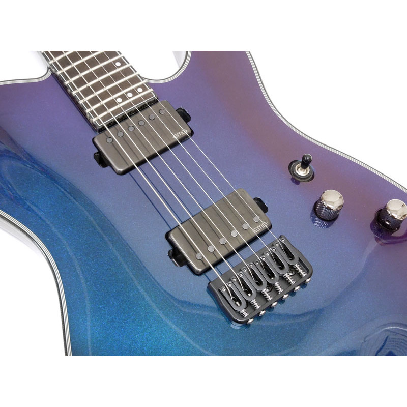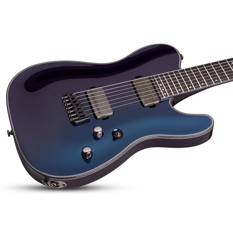 Schecter assoit définitivement sa place en proposant le chaînon manquant entre deux de ses meilleures séries. Les guitares Hellraiser Hybrid héritent de leurs soeur Hellraiser leur magnifique table sculptée en érable ondé sur un corps en acajou.