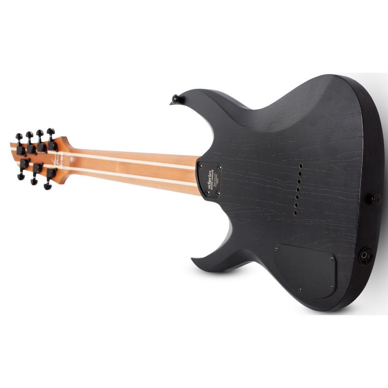 Cette version Pro propose un manche vissé en ébène noir (macassar), un corps en frêne avec table en érable et une paire de micros