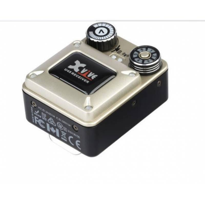 Ensemble sans-fil pour monitoring in-ear U45R4 composé d'un émetteur et de quatre récepteurs. Léger et compact Emetteur et récepteur rechargeables fonctionnant sur la bande de fréquence 5.8 GHz Commutateur Aux/Line