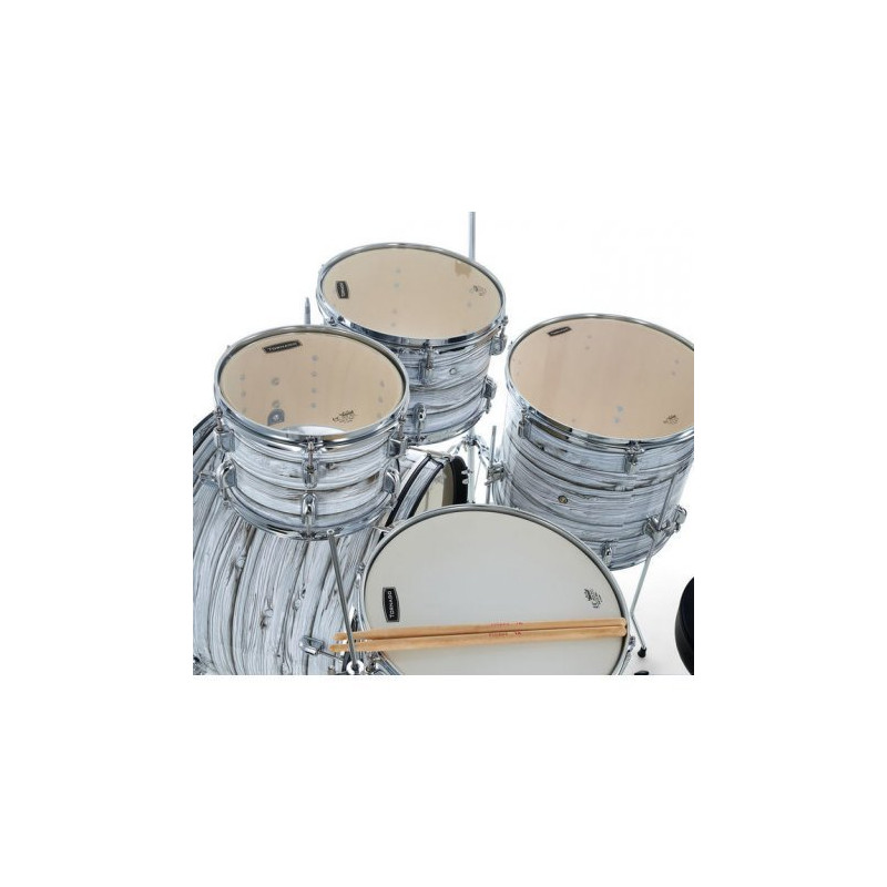 Batterie Tornado Stage 22, 5 fûts en tilleul, avec accessoires, Wood Grain white