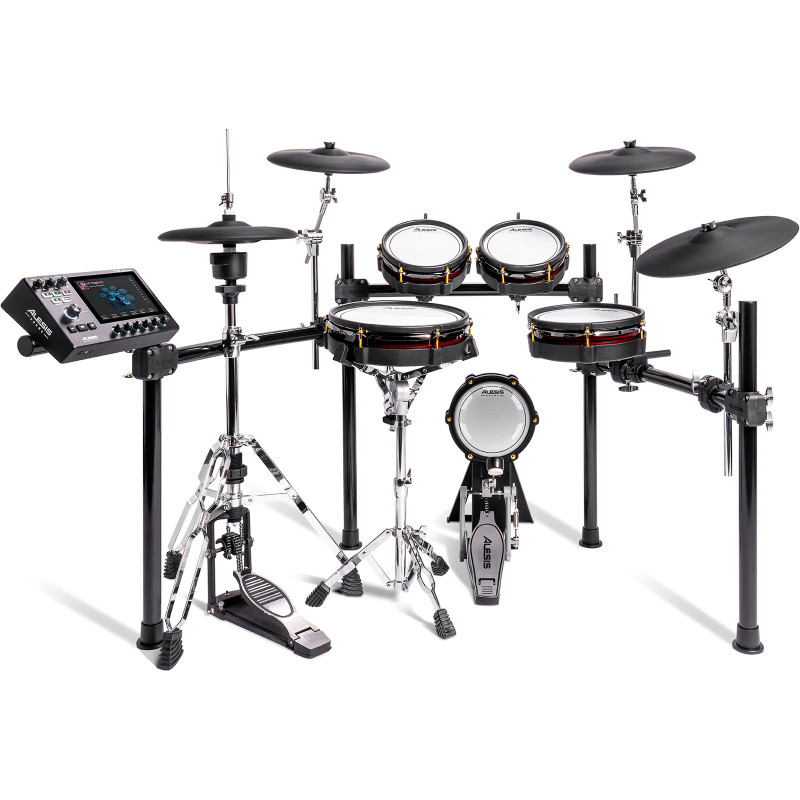 Nombre d'instruments : Plus de 25 Go de contenu d’usine multi-couches, plus de 370 pièces de kit, plus de 800 articulations réparties dans 4 bibliothèques sonores d’Alesis et BFD.