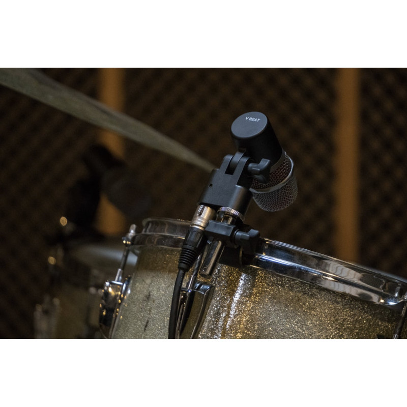 Le SE Electronics V Beat est un micro pour instrument qui propose un son très détaillé et clair, et ce même si vous le placez très près de la caisse claire ou du tom. Grâce à la directivité supercardioïde, les bruits de fond sont en grande partie exclus. Vous obtenez donc tout ce que vous attendez d'un micro pour caisse claire ou tom. De plus, le micro V Beat dispose d'un format compact grâce à l'intégration de la connexion XLR dans l'adaptateur pour pied. Avec le support V Clamp (disponible séparément), vous pourrez installer le micro V Beat sur pratiquement tous les cerclages.