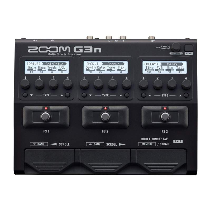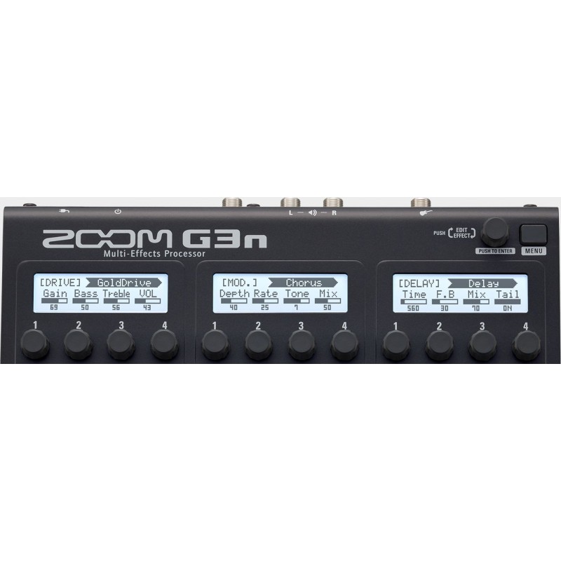 Pédalier multi-effet doté de 3 écrans pour une navigation intuitive - 6x footwitchs - 150 presets (préprogrammés & utilisateur) - 68 effets haute qualité - 5 simulations d'amplis et 5 simulations de HP - jusqu'à 7 effets simultanés personnalisables - ZOOM Guitar Lab software pour télécharger des effets additionnels et présets - port USB midi & Guitar Lab - sortie stéréo/mono/casque sur 2x Jack 6.35mm - entrée auxiliaire stéréo jack 3.5mm - entrée Control In sur jack 6.35mm pour pédale d'expression FP02M (en option) - boîte à rythmes avec 68 patterns rythmiques, fonction TAP Tempo - looper jusqu'à 80 secondes - adaptateur secteur fourni