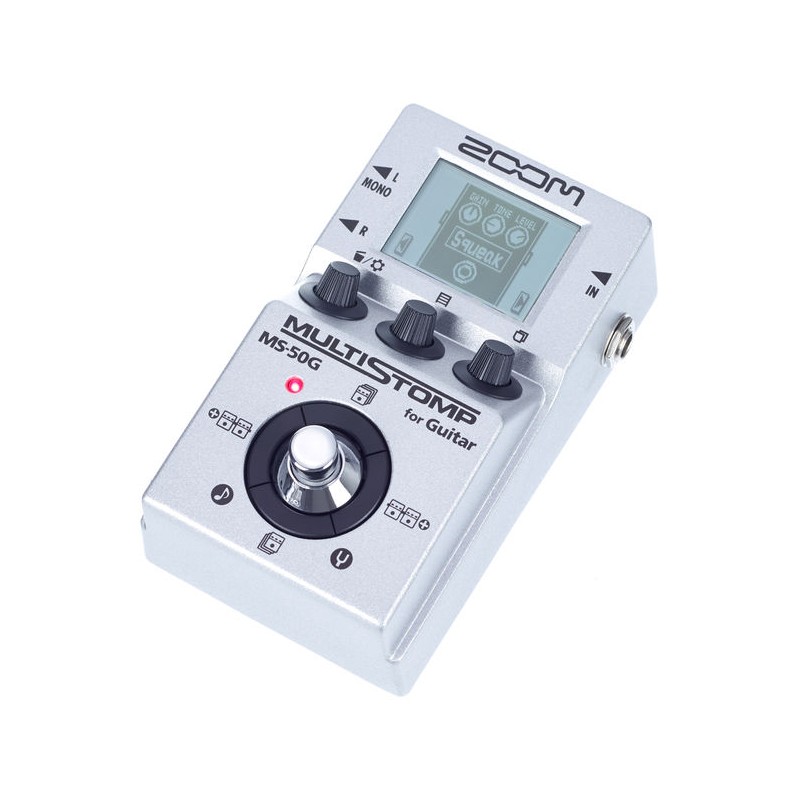 La pédale de guitare MS50-G MultiStomp de Zoom est la première du genre. Il offre la puissance d’une pédale multi-effets et la flexibilité d’un modélisateur d’amplis dans une conception à pédale simple. Avec 55 effets de pédale et modèles d'amplis classiques, une interface facile à utiliser, un accordeur chromatique automatique et des options d'alimentation polyvalentes, les guitaristes seront étonnés de l'ampleur de l'offre de cette pédale unique.