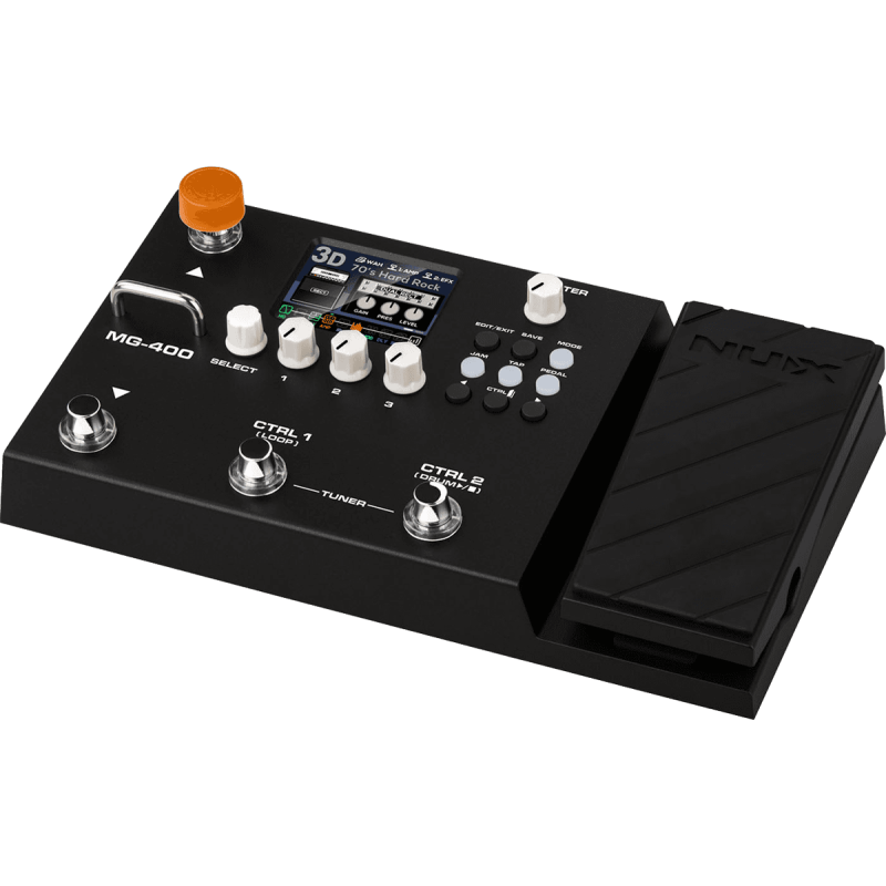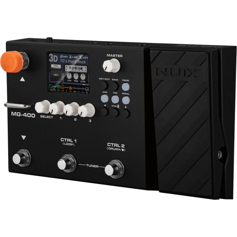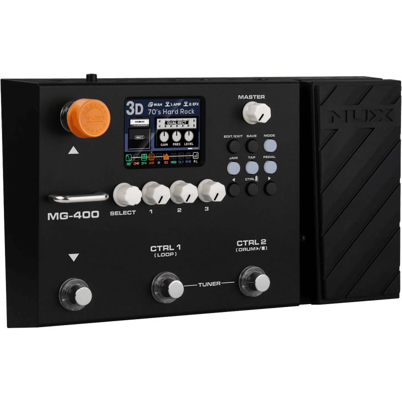 Fort du succès du MG300, Nux propose une version plus évoluée, puissante et ergonomique avec le MG400 ! Plus de puissance tout d’abord, avec deux DSP intégrés. Ce qui permet de pousser encore plus loin les possibilités de sons et de chainage des technologies renommées TSAC-HD (True Simulation for Analog Circuit) et White-Box, comme le grand cousin le MG30.