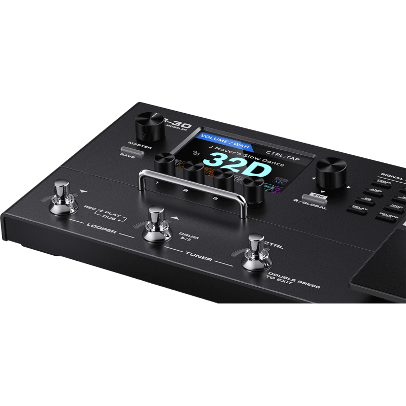 - Livré avec le footswitch NMP-2 (+ câble) pour plus de contrôle au pied des fonctionnalités / blocs d’effets