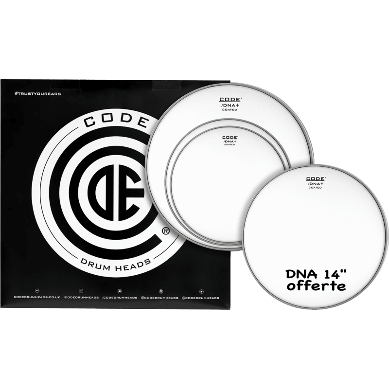 La série « Vintage » de chez CODE. Une peau simple pli de 10 mil qui saura satisfaire un grand panel de batteurs. Des balais pour les jazzeux aux baguettes épaisses pour les rockeurs, la DNA Coated + procure un son chaud avec une grosse attaque et un sustain medium. Ce pack est composé d'une peau de 10", 12" et 16" ainsi qu'une peau de caisse claire offerte en DNA coated 14" !