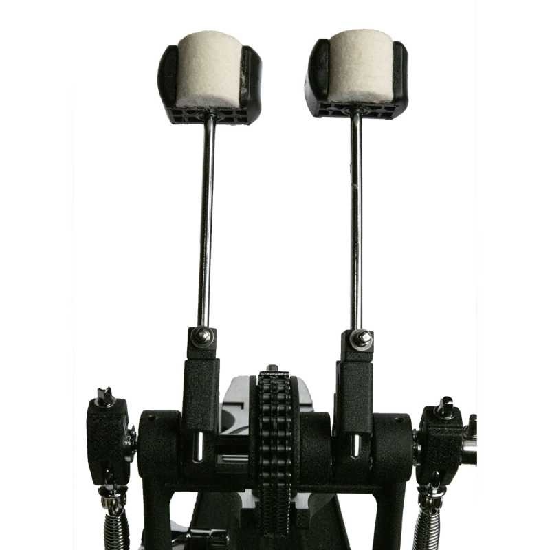 Double pédale de grosse caisse avec semelle et double chaine.