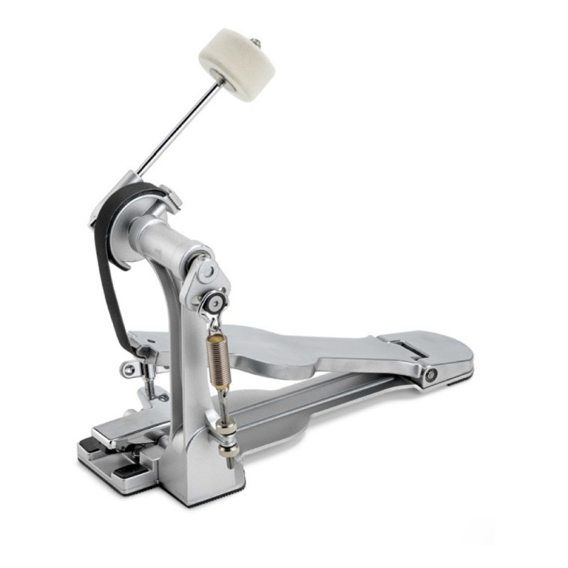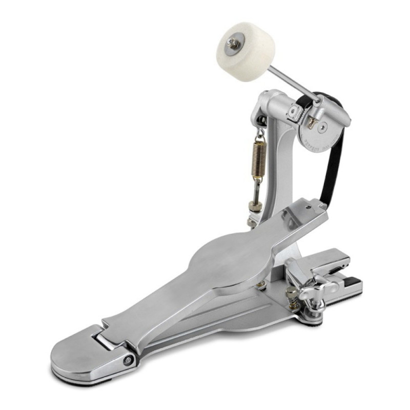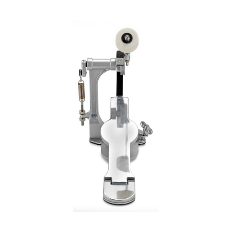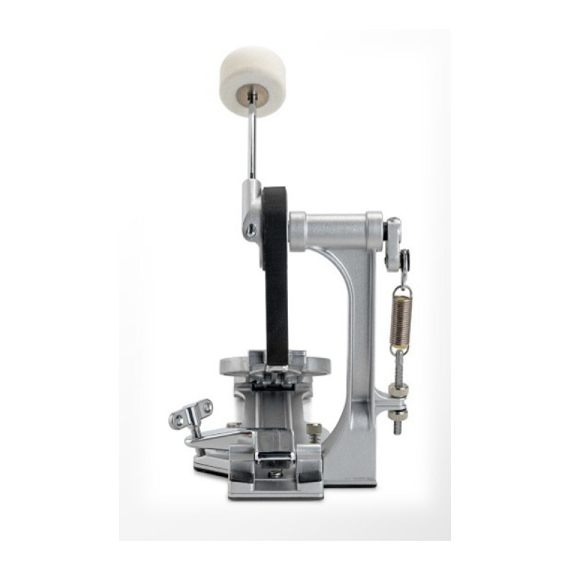 Mais si on simplifiait un peu plus ? Pas de mécanisme de pliage et de serrage sophistiqué, pas de plaque de talon gravée au laser, pas de semelle polie brillante, pas de sac en cuir - juste le système soigneusement calibré qui optimise la translation linéaire des mouvements du pied, l'équilibre parfait entre le mouvement avant ET arrière du batteur, une sensation comme si la pédale jouait d'elle même. Enfin, presque....