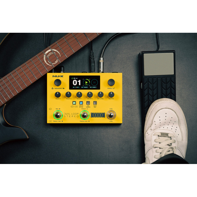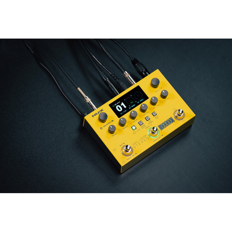 Le NUX Dual Loop Stereo est bien plus qu’un simple looper : c’est une véritable station pour performances live, qui offre aux musiciens une liberté d’expression totale. Grâce à ses deux pistes de boucles stéréo indépendantes, associées à deux sections rythmiques intégrées, il permet de construire en temps réel des structures musicales riches et dynamiques.