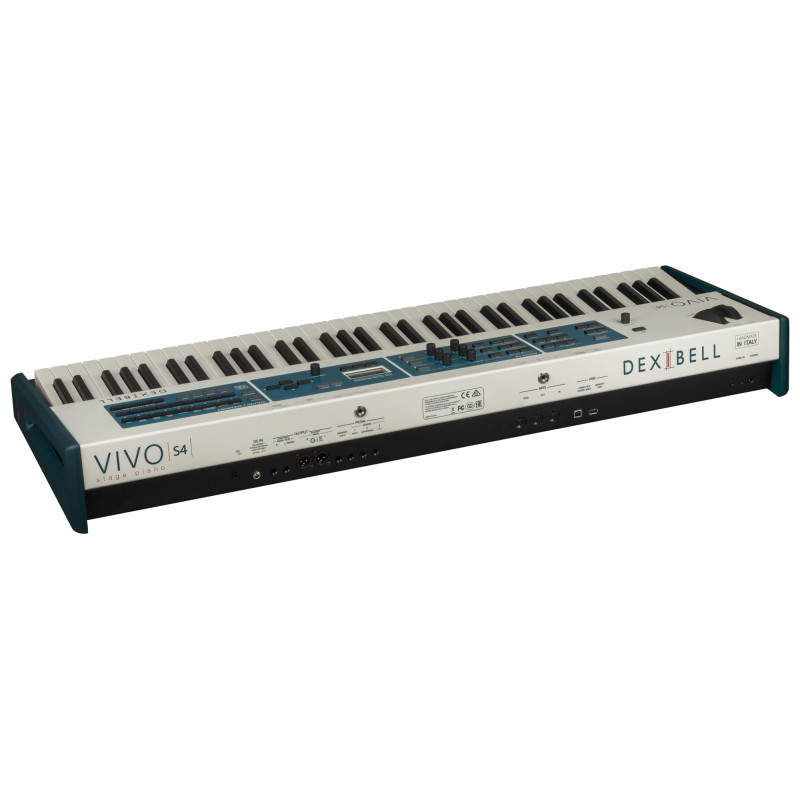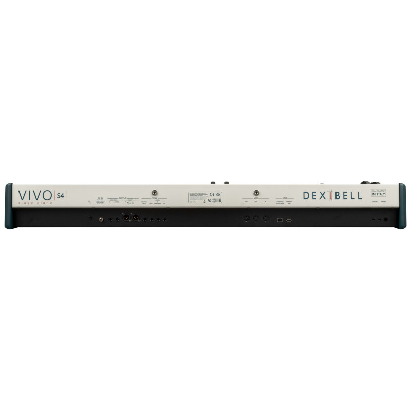 Le piano numérique de scène Dexibell Vivo S4 est le successeur naturel du modèle S3 Pro. Il s'inspire de son design et de sa simplicité d'utilisation. Doté d'un toucher lourd et d'une mécanique à marteaux triple contact, vous retrouverez les légendaires sons de pianos acoustiques et électriques disponibles pour l'ensemble de la série Vivo.