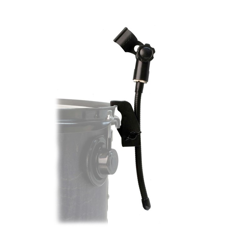 Pince micro à col de cygne flexible et ajustable à l'aide d'une molette pour supports tels que les cerclages de batterie, percussions diverses. Filetage 5/8 de pouce (standard américain) avec adaptateur 3/8 de pouce pour standard européen.