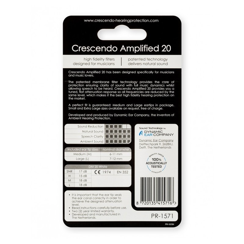 Le filtre conçu par Dynamic Ear Company (maison mère de Crescendo) remplit tous ces critères. L'utilisation de ces filtres par beaucoup de grandes marques de protections auditives moulées sur-mesure est le meilleur indicateur de leur succès et fiabilité.