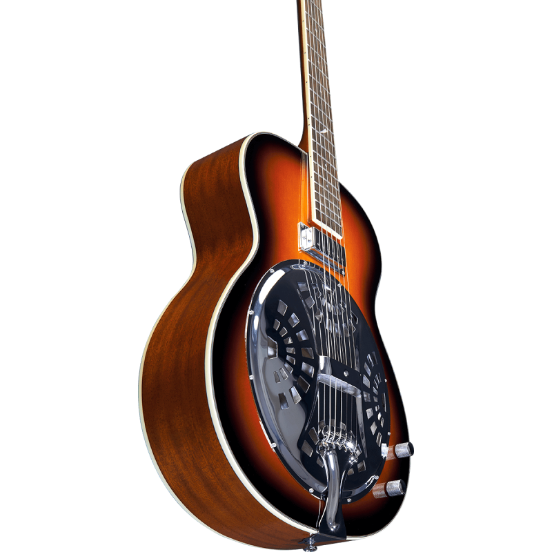La guitare One Resonator est soigneusement construite avec une table en épicéa et le fond et les éclisses sont en acajou sapelli, une association commune, mais un rendu sonore clair et équilibré. Son format Auditorium permet une belle projection du son, associé au cône résonateur en métal type Spider, pour des sonorités bluegrass typique ! Le manche est en acajou soutenant la touche en roupanà sud-américain de 20 cases. La conception spéciale de la tête, les formes arrondies douces, l'incrustation d’une virgule " / " sur la douzième case, ainsi que les mécaniques rétro type Butterbean assurent un look élégant, entre moderne et vintage. Le micro manche mini-humbucker s’associe parfaitement aux sonorités folkloriques américaines ou slide blues, et peut être ajusté avec les contrôles de volume et tonalité.