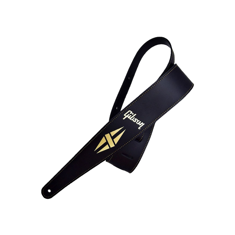 Cette sangle élégante noire est ornée du logo Gibson en forme de losange, couleur dorée. Fabriquée en cuir véritable.