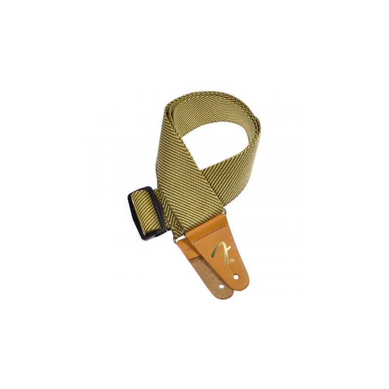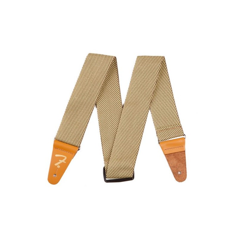 Embossed gold Fender “F” logo on reinforced leather ends adds an extra cosmetic touch and uncompromised durability