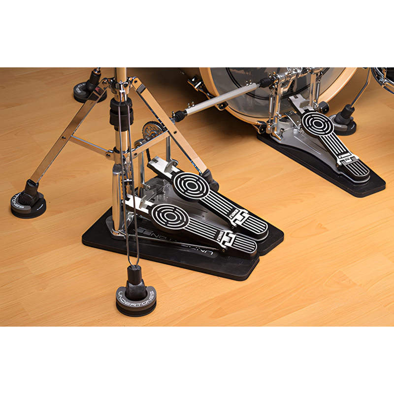 Ce système innovant comprend des disques spécialement conçus pour les pieds de tom basse et les pics de grosse caisse, ainsi qu'un coussin pour les pédales de grosse caisse et de charleston acoustiques et électroniques. Les pads désolidarisent et isolent les batteries du sol, ajoutant un sustain et des graves significatifs à leur son. La combinaison des coussinets de pieds et de pédale est particulièrement efficace pour améliorer le son des grosses caisses et des toms montés sur les grosses caisses. En outre, le dessous d'Undertones comporte un matériau antidérapant exclusif qui aide à ancrer les batteries et l’hardware sur une variété de surfaces et réduit le besoin de tapis de batterie.