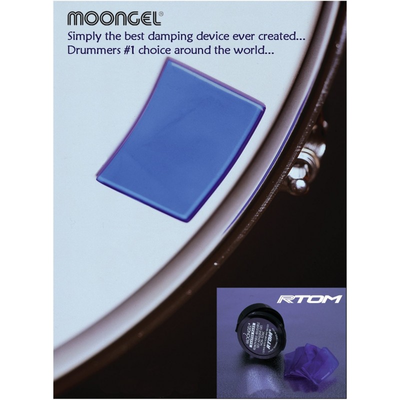 Ce gel auto-adhésif peut être positionné sur les peaux des fûts, sur les cymbales ainsi que sur certaines percussions. Cette nouvelle version de Super Moongel permet aussi de les placer sous les peaux de résonnance et sous les cymbales.