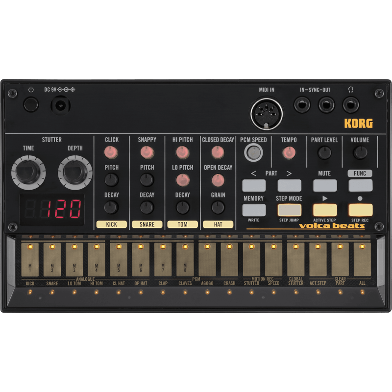 Un mix entre des sonorités analogiques et des PCM pour créer des rythmes vintage mais aussi actuels. Ultrasimple à programmer avec son séquenceur pas à pas, la Volca Beats est une boîte à rythmes avec 6 parties éditables analogiques, une fonction par contrôle, un moteur sonore PCM, un séquenceur 16 pas avec 10 parties pour une rythmique ainsi que 8 mémoires de pattern, un effet Stutter, des fonctions Active step (ajoute ou supprime des pas) et Step jump qui ne joue que le pas sélectionné. Simple à utiliser et à programmer, facile à transporter et fonctionnant sur piles, vous allez pouvoir composer des rythmes qui cognent dans n'importe quel endroit !